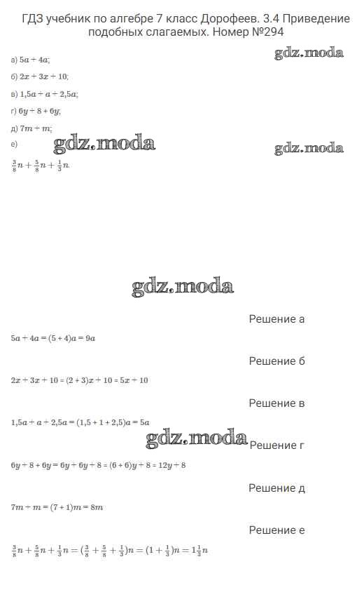 ОТВЕТ на задание № 294 Учебник по Алгебре 7 класс Дорофеев Академический школьный учебник