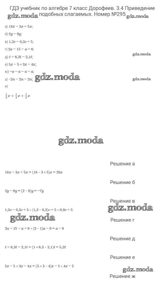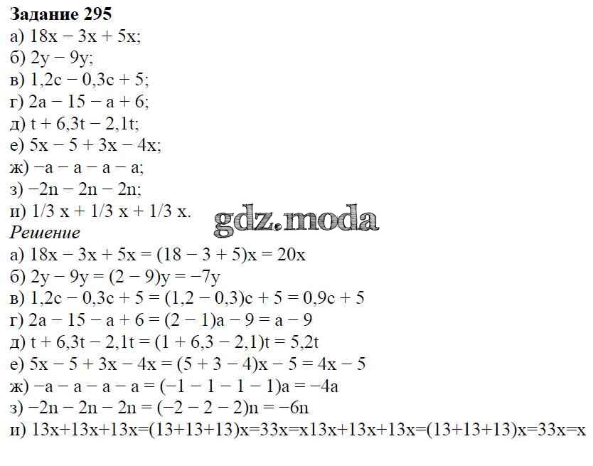 ОТВЕТ на задание № 295 Учебник по Алгебре 7 класс Дорофеев Академический школьный учебник