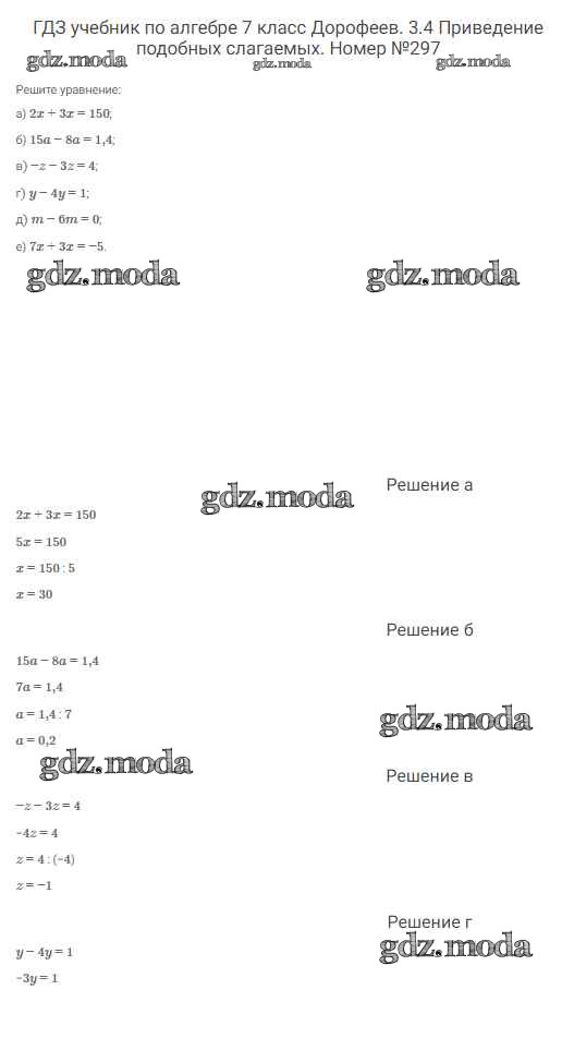 ОТВЕТ на задание № 297 Учебник по Алгебре 7 класс Дорофеев Академический школьный учебник