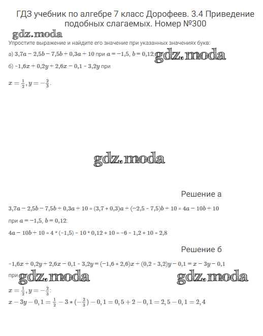 ОТВЕТ на задание № 300 Учебник по Алгебре 7 класс Дорофеев Академический школьный учебник