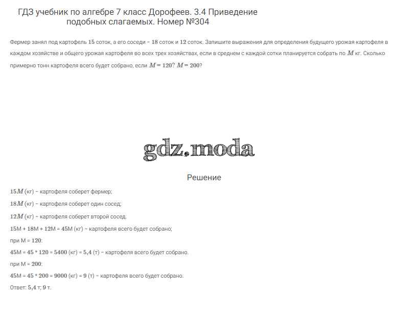 ОТВЕТ на задание № 304 Учебник по Алгебре 7 класс Дорофеев Академический школьный учебник