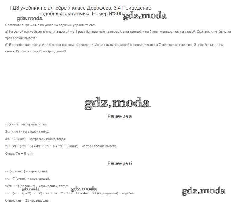 ОТВЕТ на задание № 306 Учебник по Алгебре 7 класс Дорофеев Академический школьный учебник