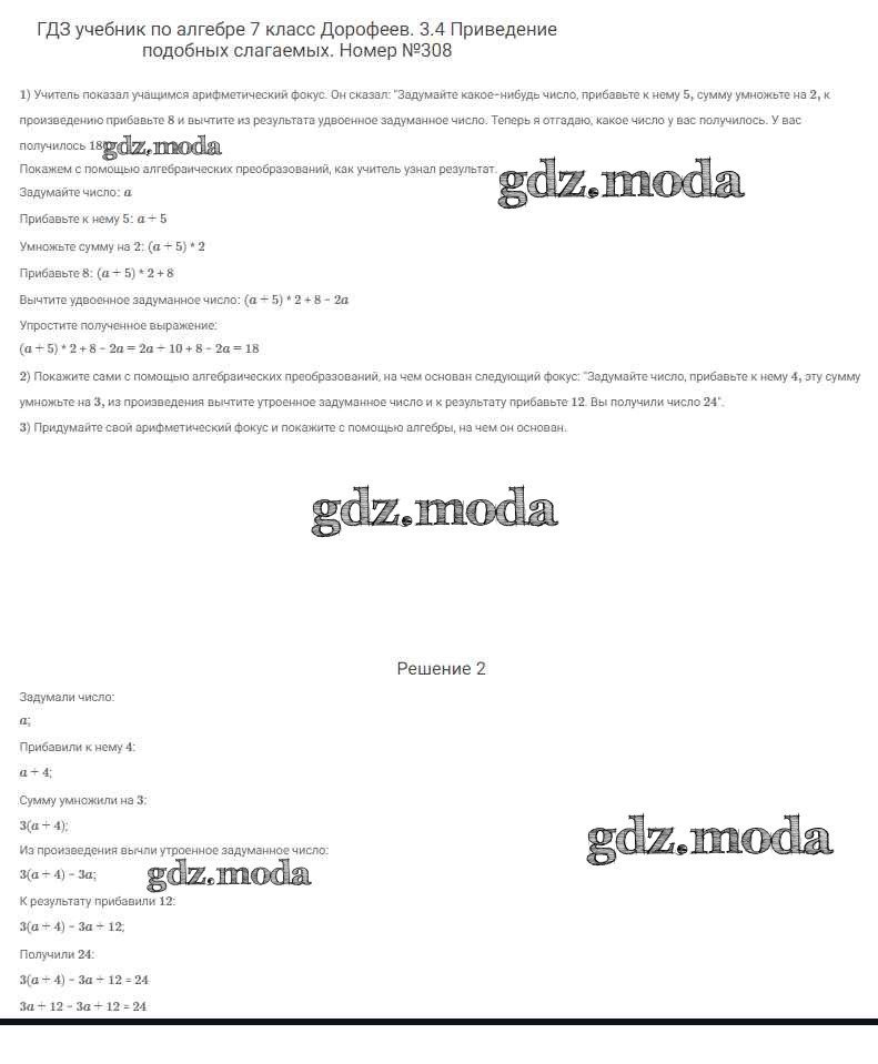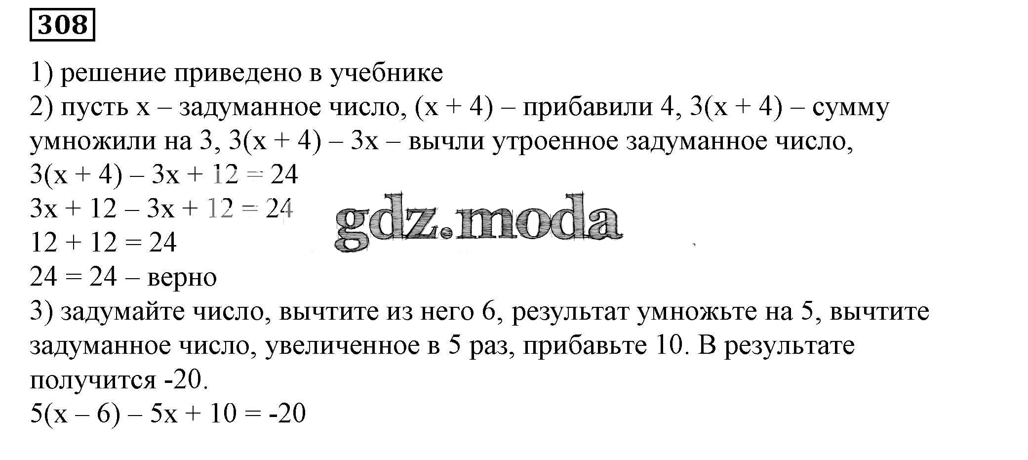 ОТВЕТ на задание № 308 Учебник по Алгебре 7 класс Дорофеев Академический школьный учебник