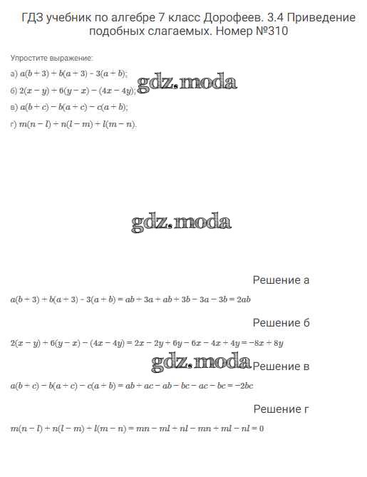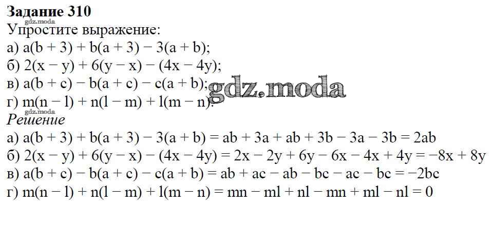 ОТВЕТ на задание № 310 Учебник по Алгебре 7 класс Дорофеев Академический школьный учебник