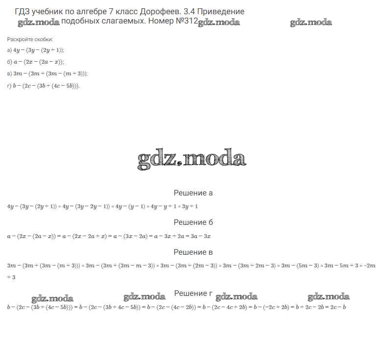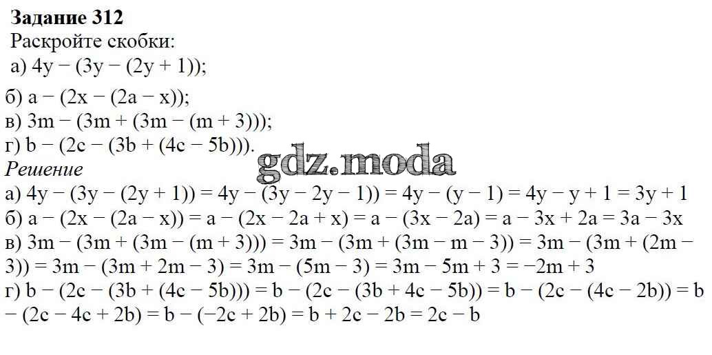 ОТВЕТ на задание № 312 Учебник по Алгебре 7 класс Дорофеев Академический школьный учебник