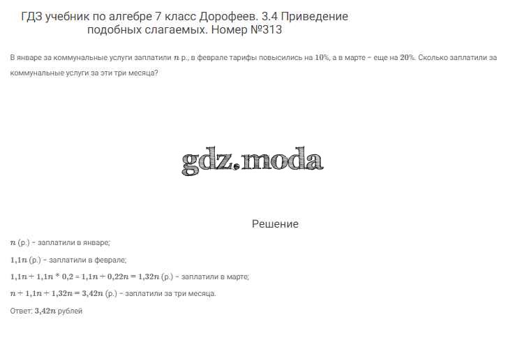 ОТВЕТ на задание № 313 Учебник по Алгебре 7 класс Дорофеев Академический школьный учебник