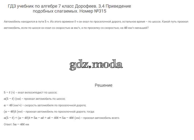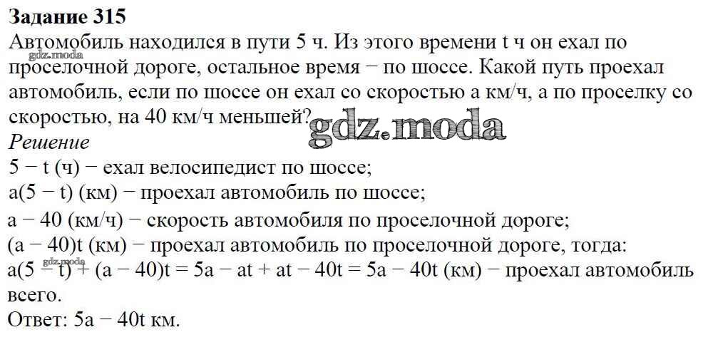 ОТВЕТ на задание № 315 Учебник по Алгебре 7 класс Дорофеев Академический школьный учебник