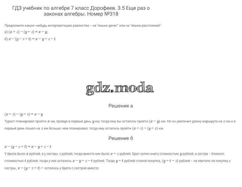ОТВЕТ на задание № 318 Учебник по Алгебре 7 класс Дорофеев Академический школьный учебник