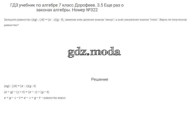 ОТВЕТ на задание № 322 Учебник по Алгебре 7 класс Дорофеев Академический школьный учебник