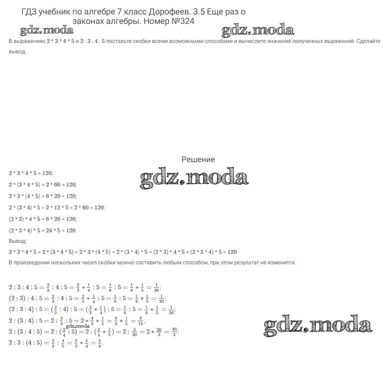 ОТВЕТ на задание № 324 Учебник по Алгебре 7 класс Дорофеев Академический школьный учебник