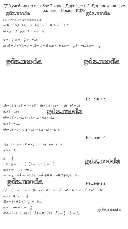 ОТВЕТ на задание № 328 Учебник по Алгебре 7 класс Дорофеев Академический школьный учебник