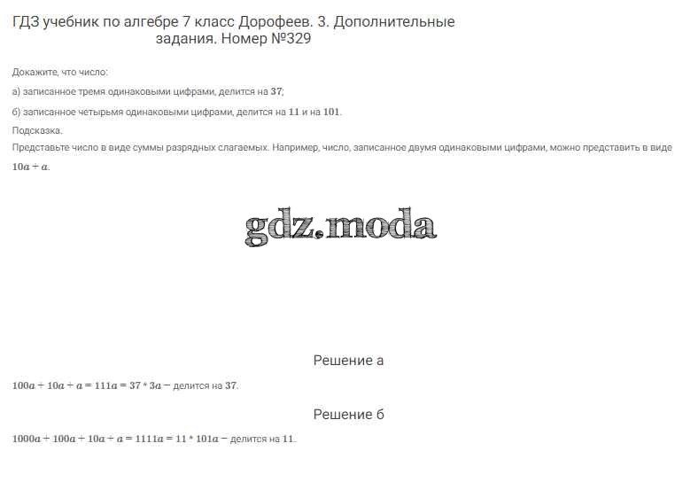 ОТВЕТ на задание № 329 Учебник по Алгебре 7 класс Дорофеев Академический школьный учебник