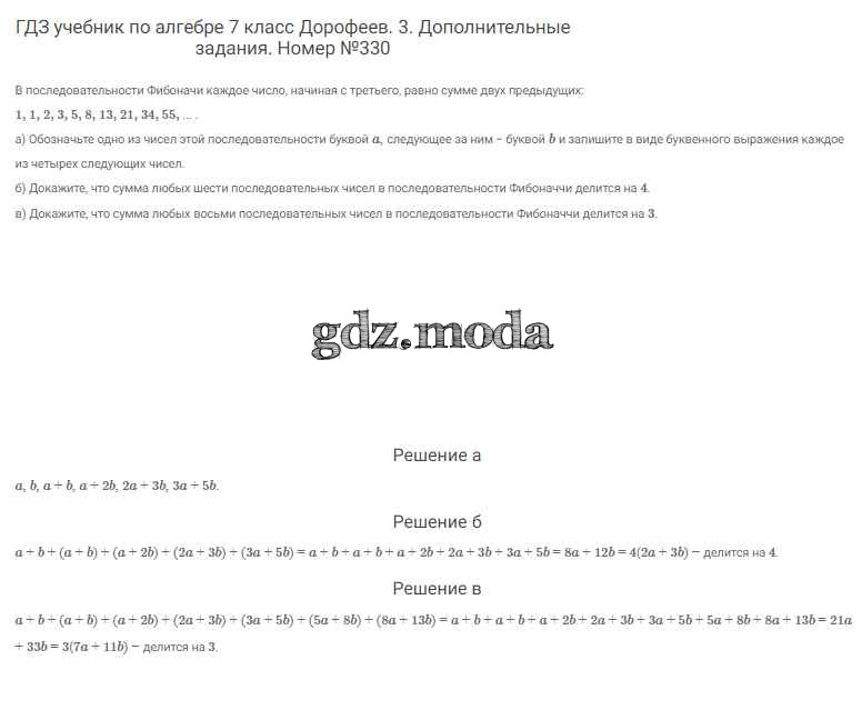 ОТВЕТ на задание № 330 Учебник по Алгебре 7 класс Дорофеев Академический школьный учебник