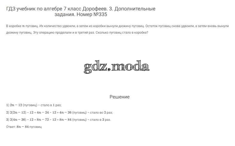 ОТВЕТ на задание № 335 Учебник по Алгебре 7 класс Дорофеев Академический школьный учебник