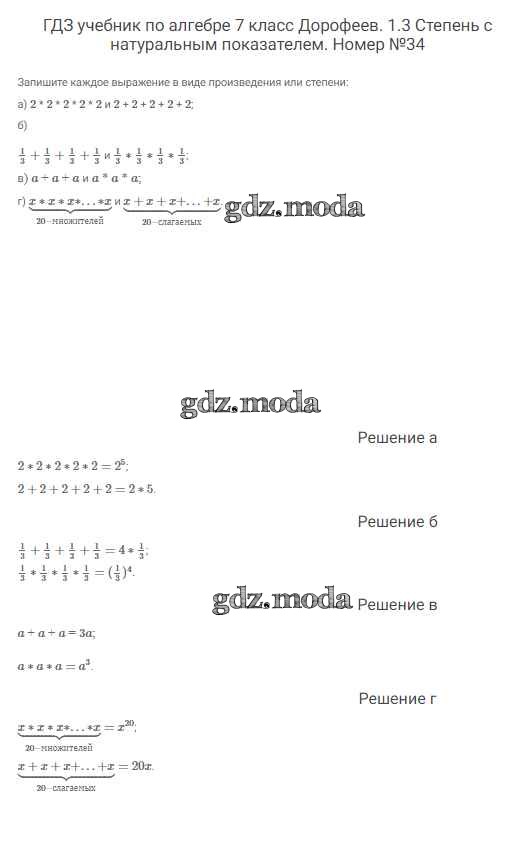 ОТВЕТ на задание № 34 Учебник по Алгебре 7 класс Дорофеев Академический школьный учебник