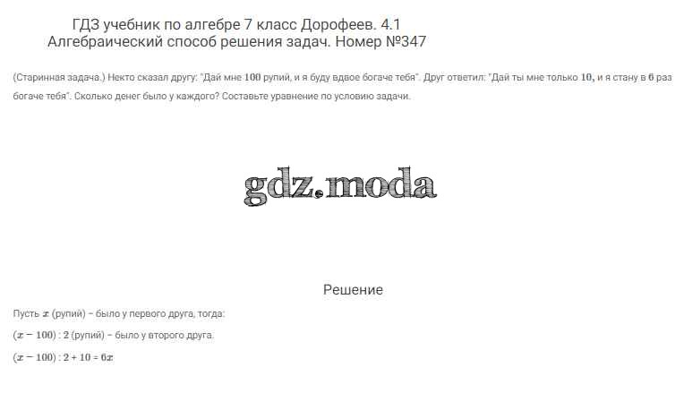 ОТВЕТ на задание № 347 Учебник по Алгебре 7 класс Дорофеев Академический школьный учебник