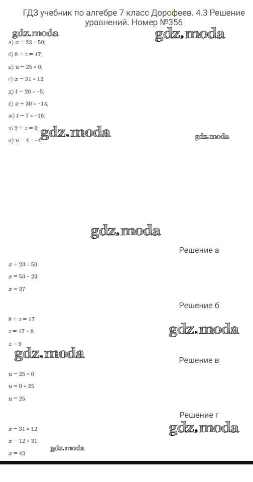 ОТВЕТ на задание № 356 Учебник по Алгебре 7 класс Дорофеев Академический школьный учебник