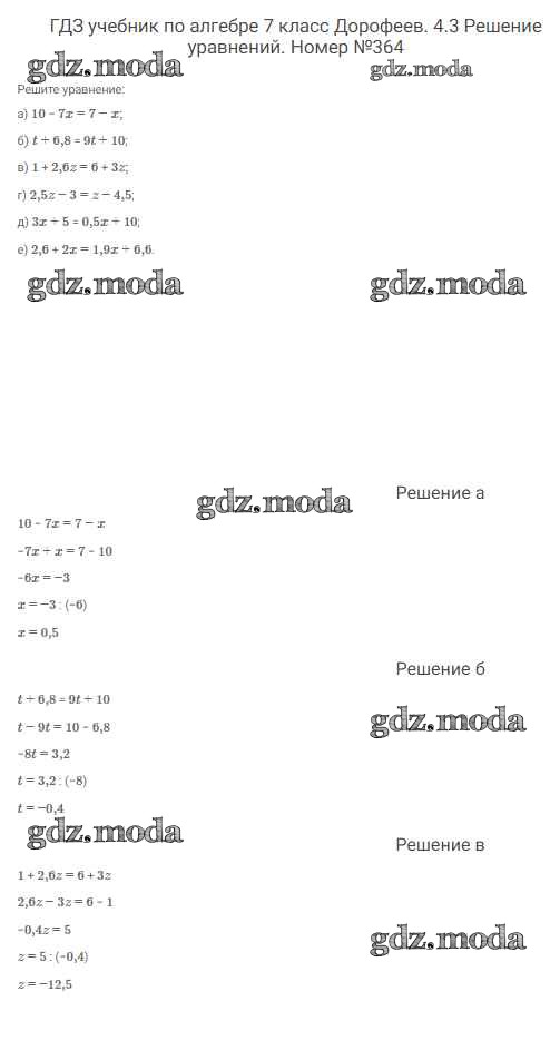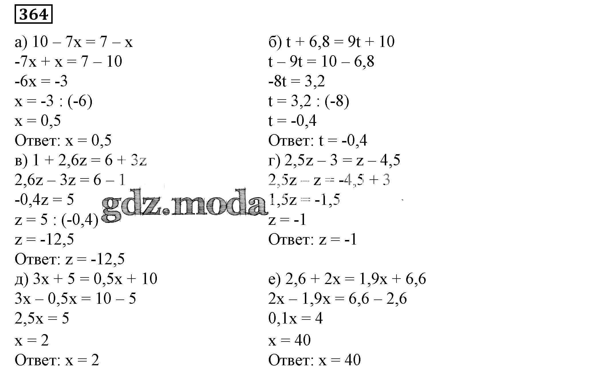 ОТВЕТ на задание № 364 Учебник по Алгебре 7 класс Дорофеев Академический школьный учебник