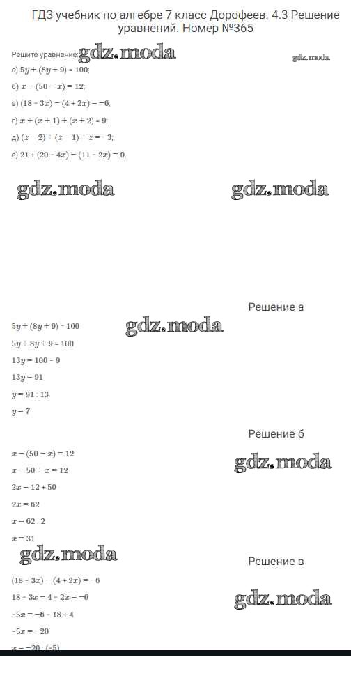 ОТВЕТ на задание № 365 Учебник по Алгебре 7 класс Дорофеев Академический школьный учебник