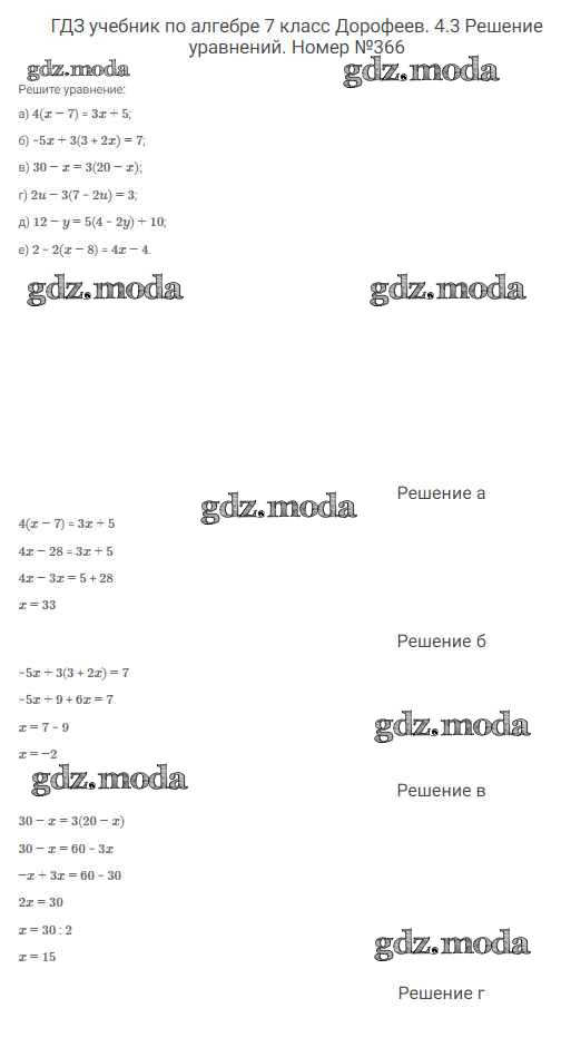 ОТВЕТ на задание № 366 Учебник по Алгебре 7 класс Дорофеев Академический школьный учебник