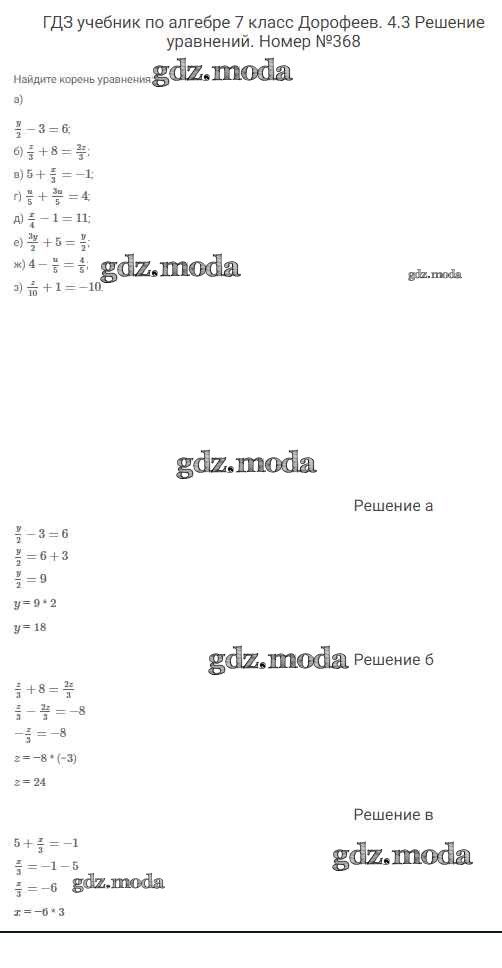 ОТВЕТ на задание № 368 Учебник по Алгебре 7 класс Дорофеев Академический школьный учебник