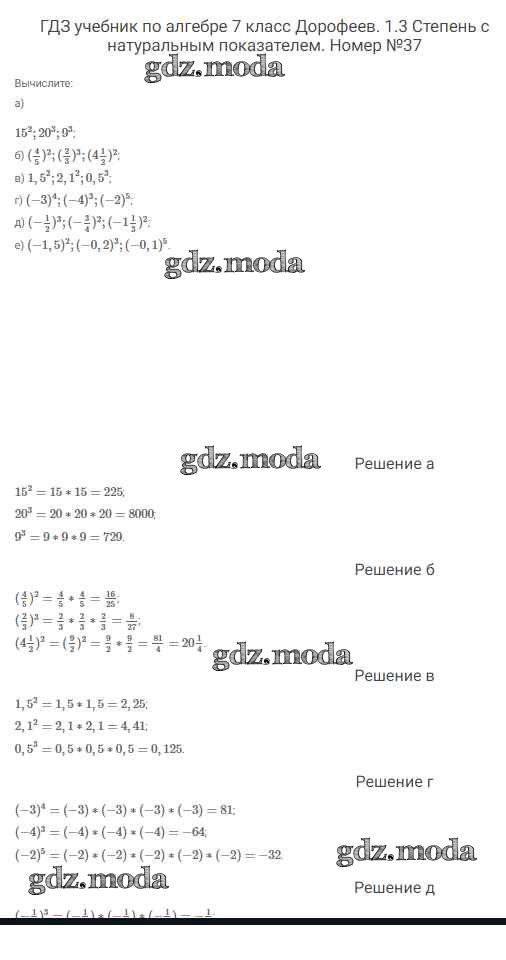 ОТВЕТ на задание № 37 Учебник по Алгебре 7 класс Дорофеев Академический школьный учебник
