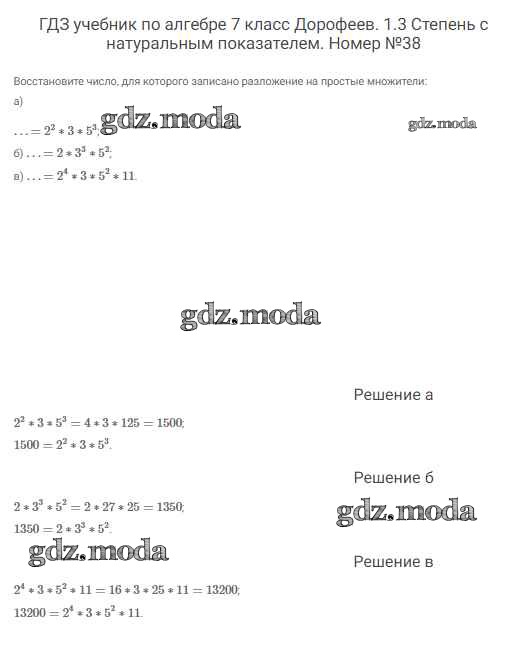 ОТВЕТ на задание № 38 Учебник по Алгебре 7 класс Дорофеев Академический школьный учебник