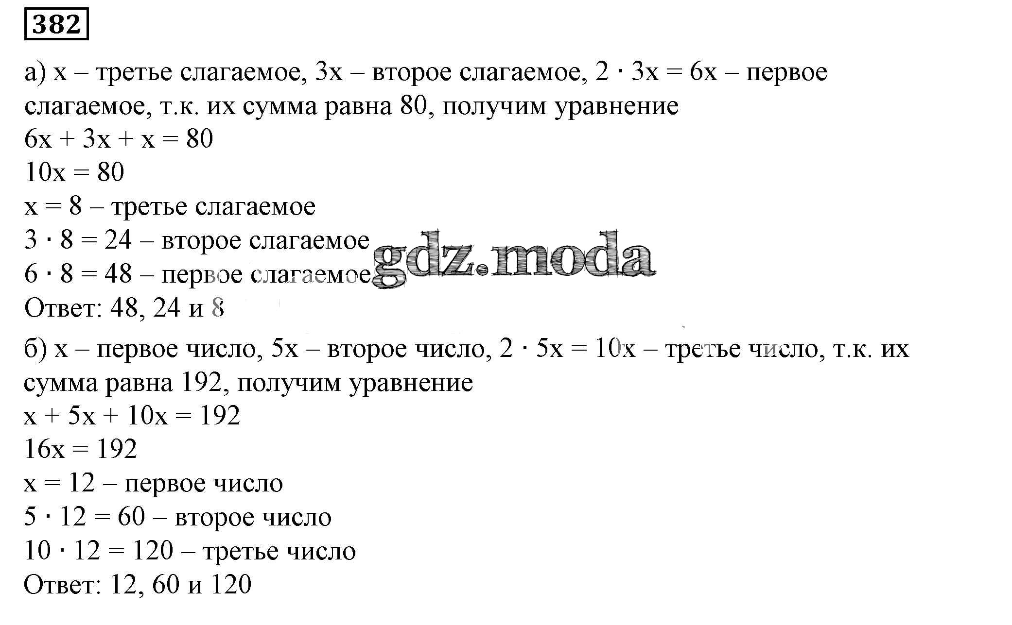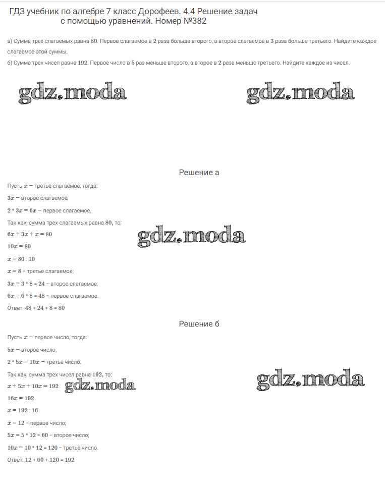 ОТВЕТ на задание № 382 Учебник по Алгебре 7 класс Дорофеев Академический школьный учебник