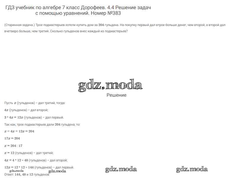 ОТВЕТ на задание № 383 Учебник по Алгебре 7 класс Дорофеев Академический школьный учебник