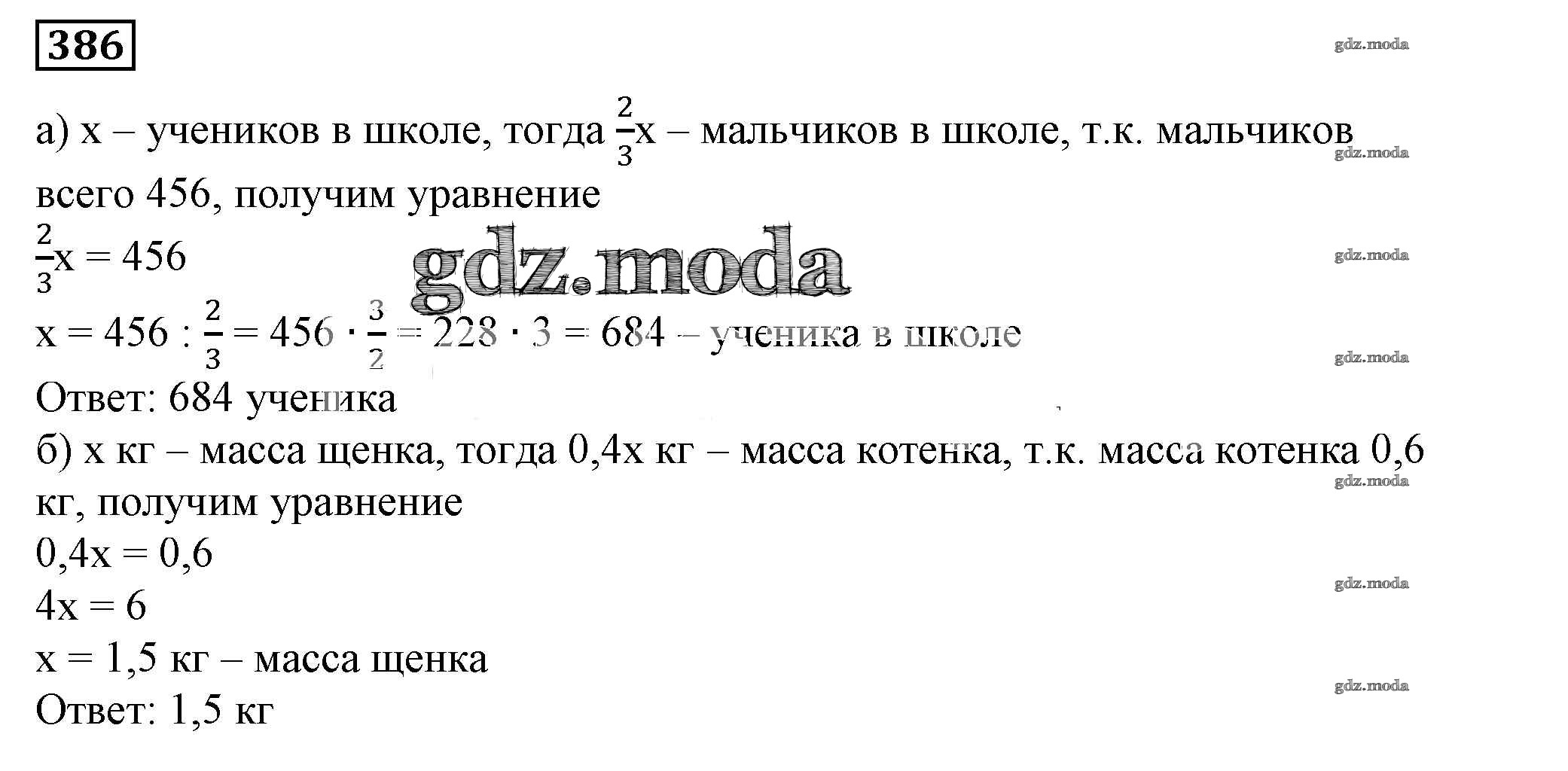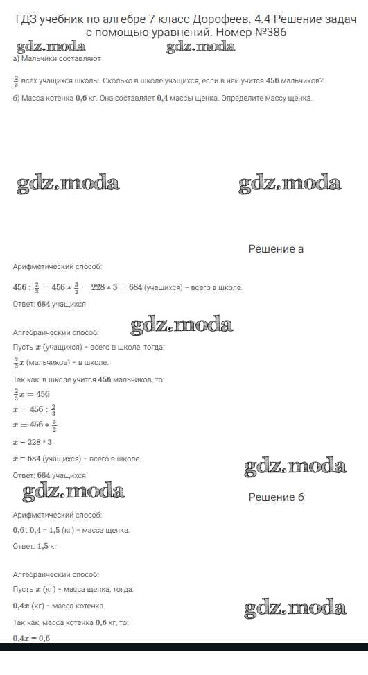 ОТВЕТ на задание № 386 Учебник по Алгебре 7 класс Дорофеев Академический школьный учебник