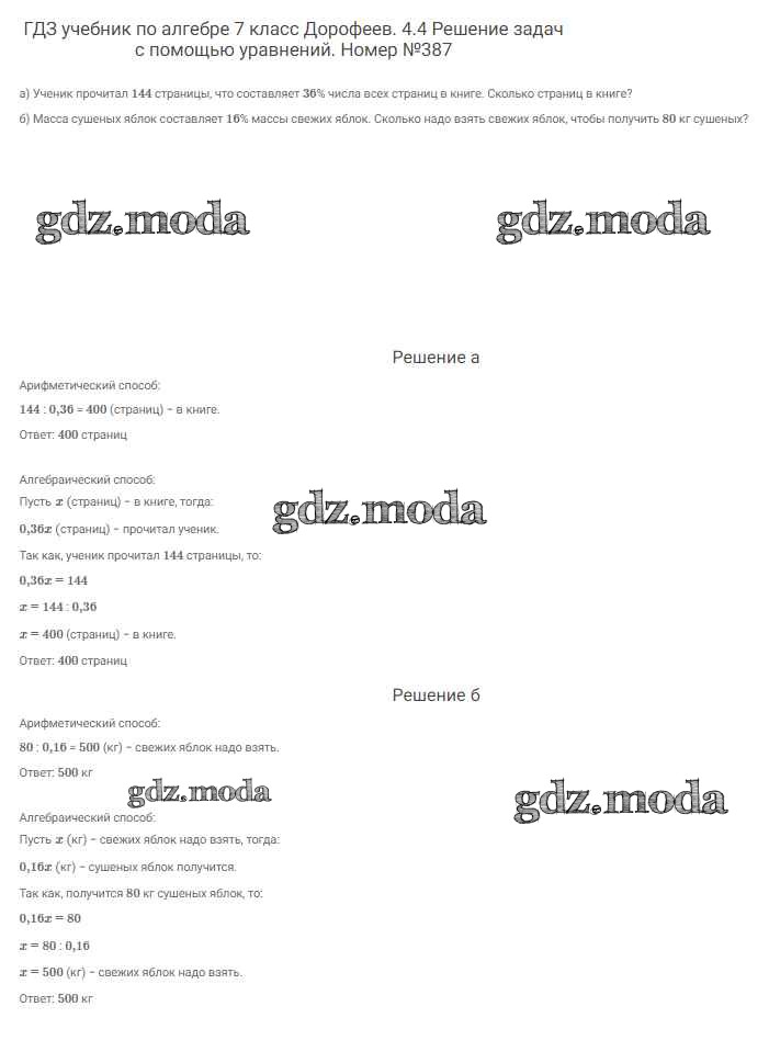 ОТВЕТ на задание № 387 Учебник по Алгебре 7 класс Дорофеев Академический школьный учебник