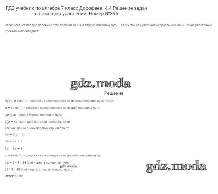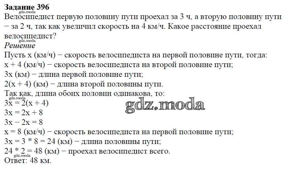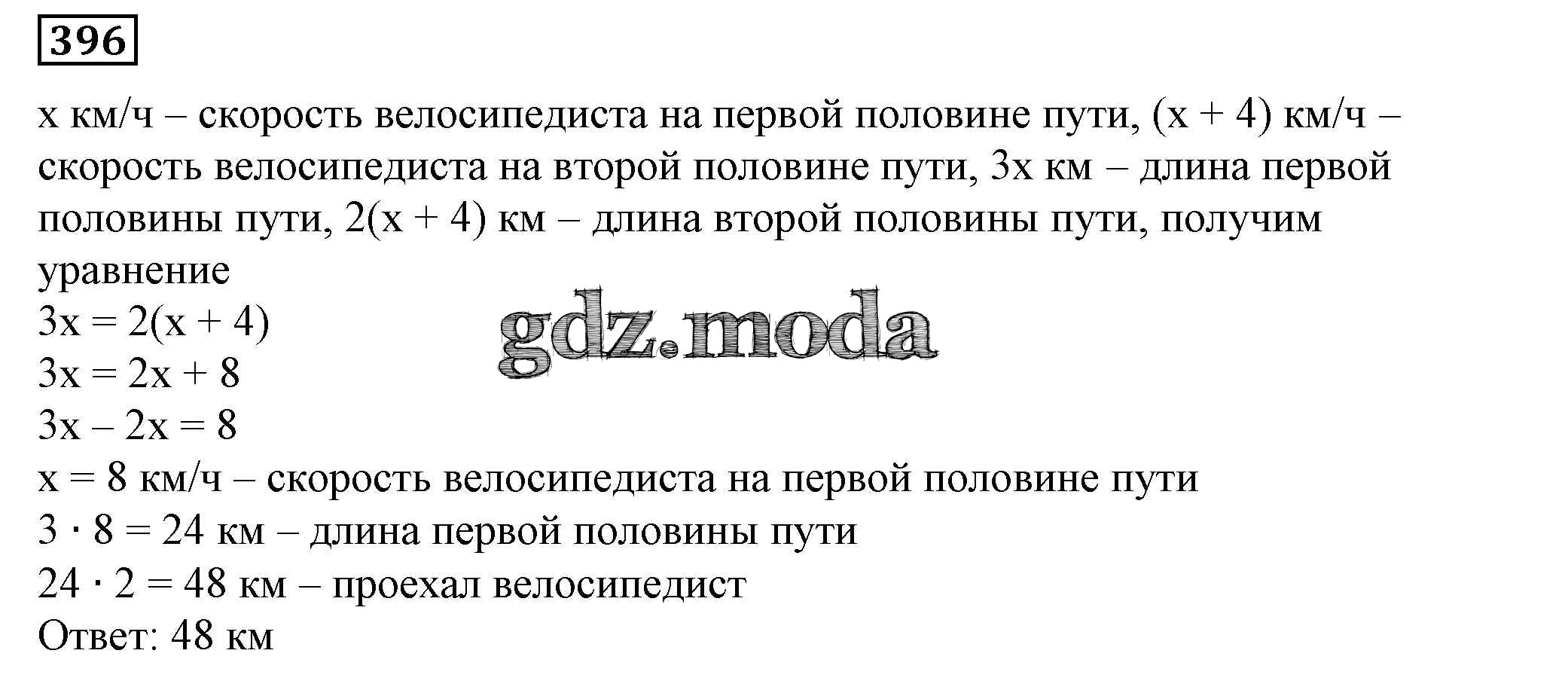 ОТВЕТ на задание № 396 Учебник по Алгебре 7 класс Дорофеев Академический школьный учебник