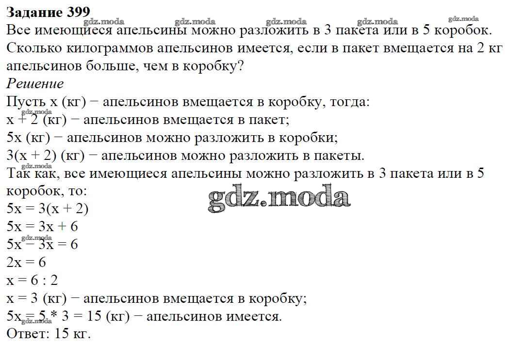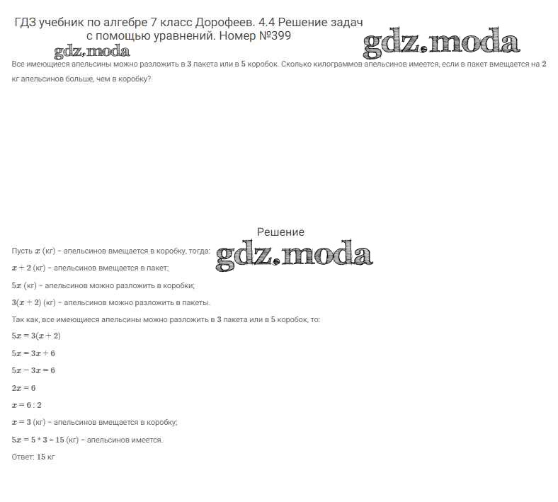 ОТВЕТ на задание № 399 Учебник по Алгебре 7 класс Дорофеев Академический школьный учебник