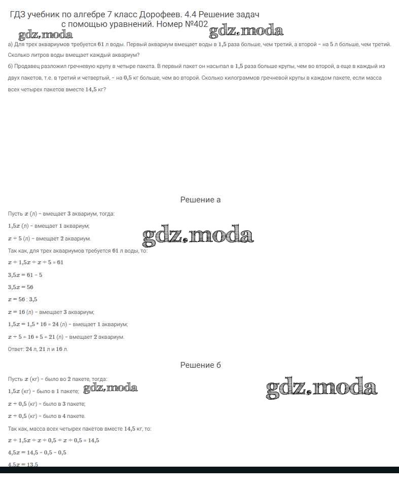 ОТВЕТ на задание № 402 Учебник по Алгебре 7 класс Дорофеев Академический школьный учебник