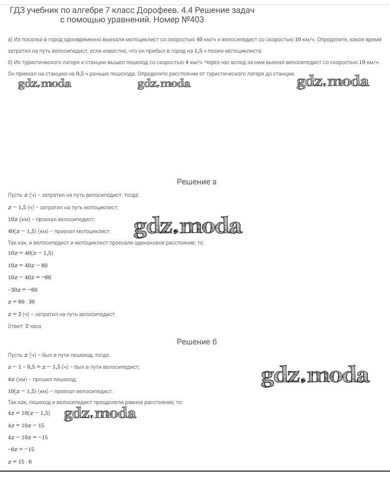 ОТВЕТ на задание № 403 Учебник по Алгебре 7 класс Дорофеев Академический школьный учебник