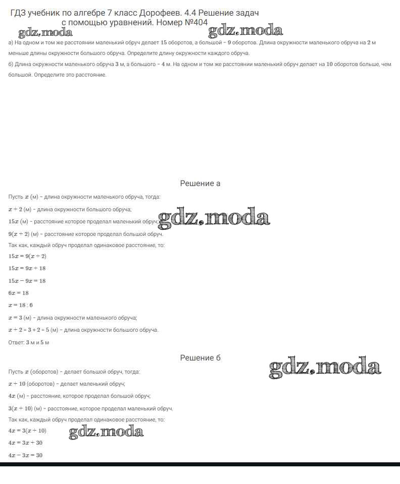 ОТВЕТ на задание № 404 Учебник по Алгебре 7 класс Дорофеев Академический школьный учебник
