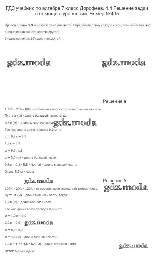 ОТВЕТ на задание № 405 Учебник по Алгебре 7 класс Дорофеев Академический школьный учебник