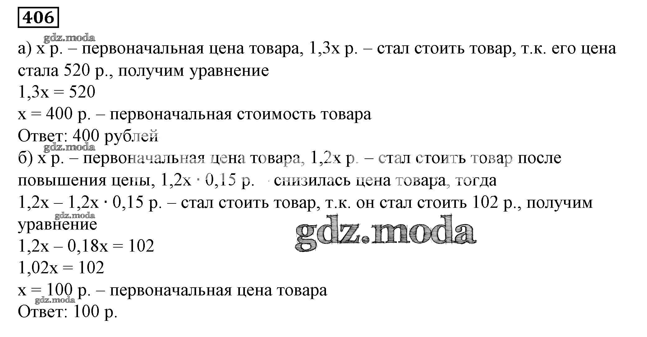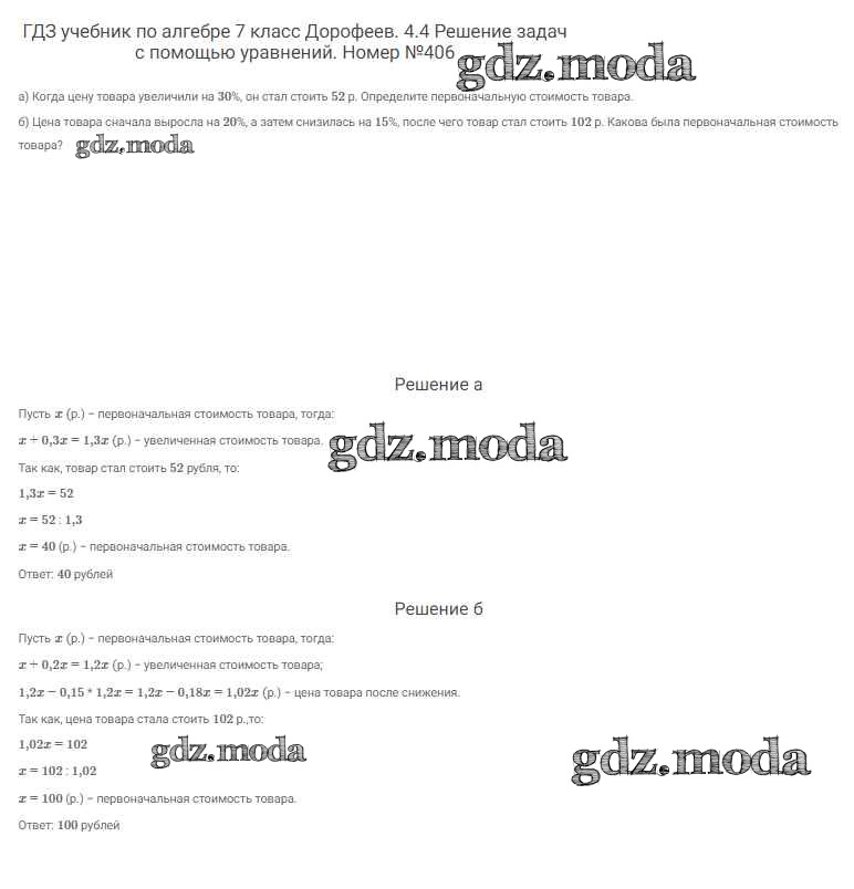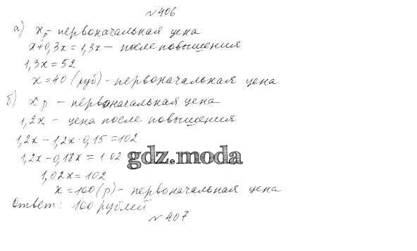 ОТВЕТ на задание № 406 Учебник по Алгебре 7 класс Дорофеев Академический школьный учебник