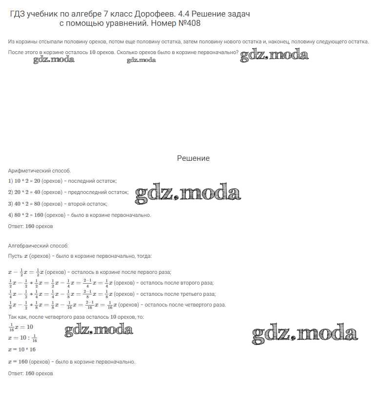 ОТВЕТ на задание № 408 Учебник по Алгебре 7 класс Дорофеев Академический школьный учебник