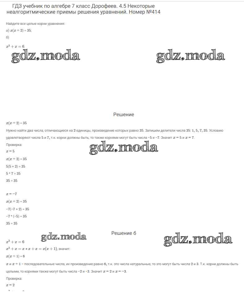 ОТВЕТ на задание № 414 Учебник по Алгебре 7 класс Дорофеев Академический школьный учебник