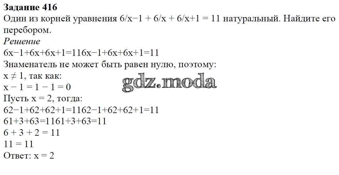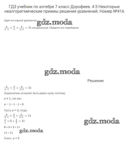 ОТВЕТ на задание № 416 Учебник по Алгебре 7 класс Дорофеев Академический школьный учебник