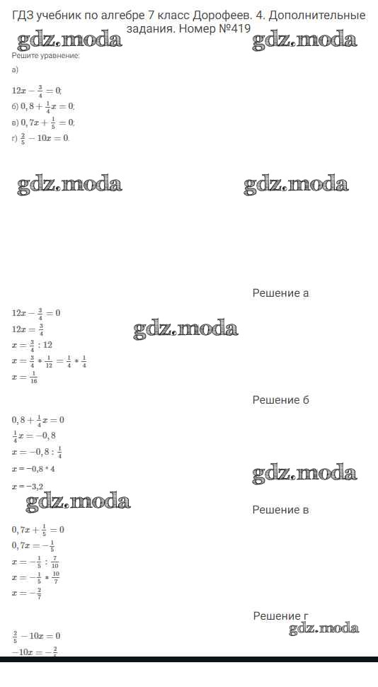 ОТВЕТ на задание № 419 Учебник по Алгебре 7 класс Дорофеев Академический школьный учебник