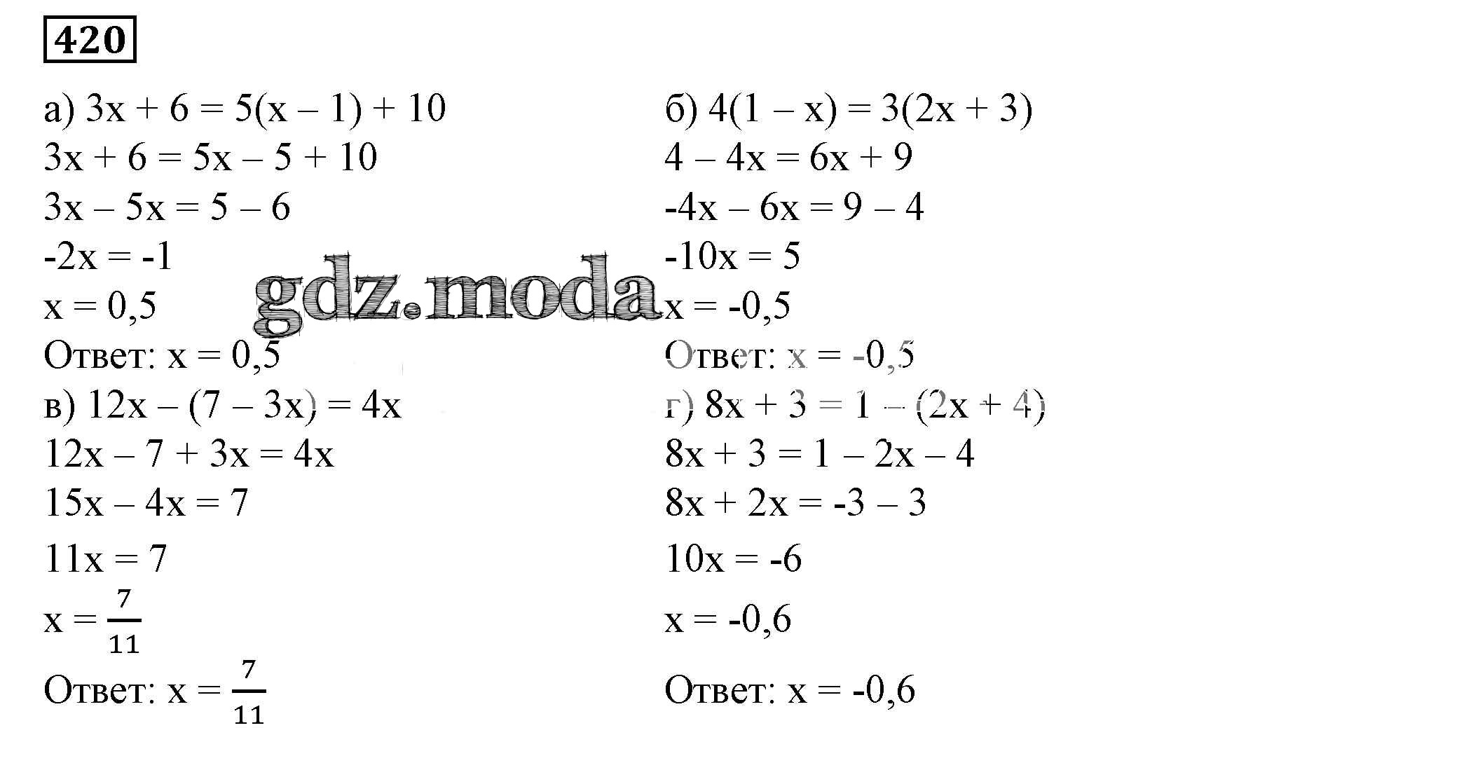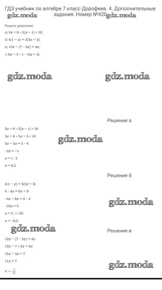 ОТВЕТ на задание № 420 Учебник по Алгебре 7 класс Дорофеев Академический школьный учебник