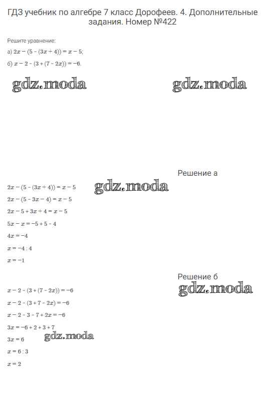 ОТВЕТ на задание № 422 Учебник по Алгебре 7 класс Дорофеев Академический школьный учебник