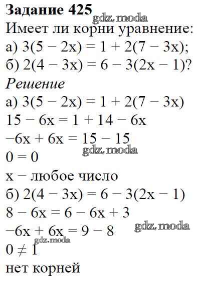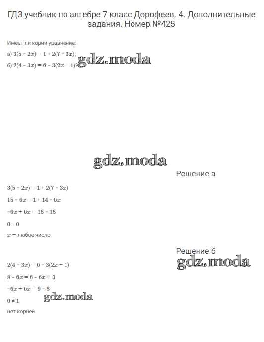 ОТВЕТ на задание № 425 Учебник по Алгебре 7 класс Дорофеев Академический школьный учебник