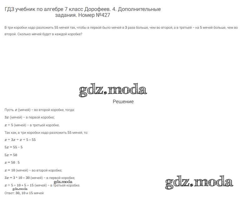 ОТВЕТ на задание № 427 Учебник по Алгебре 7 класс Дорофеев Академический школьный учебник