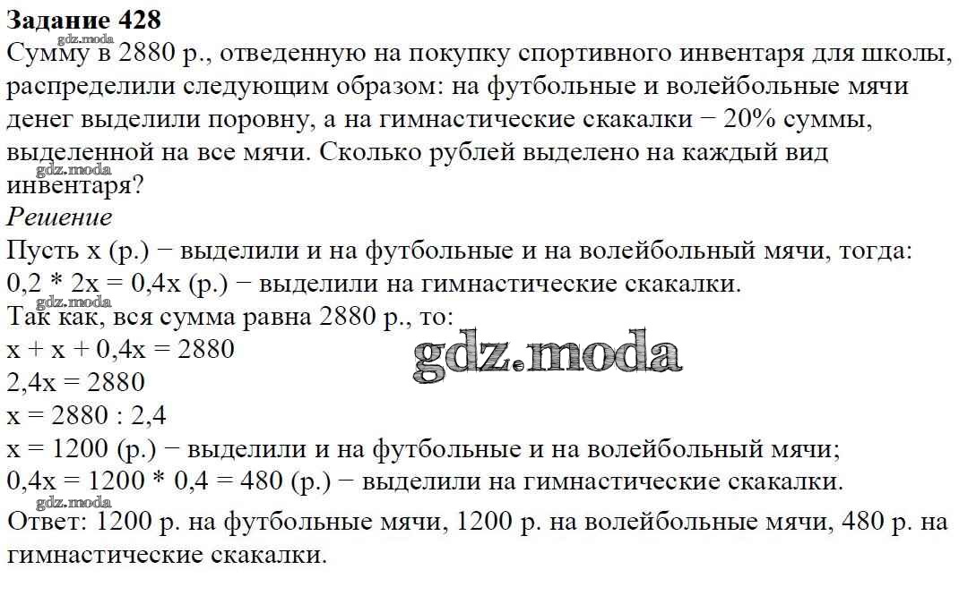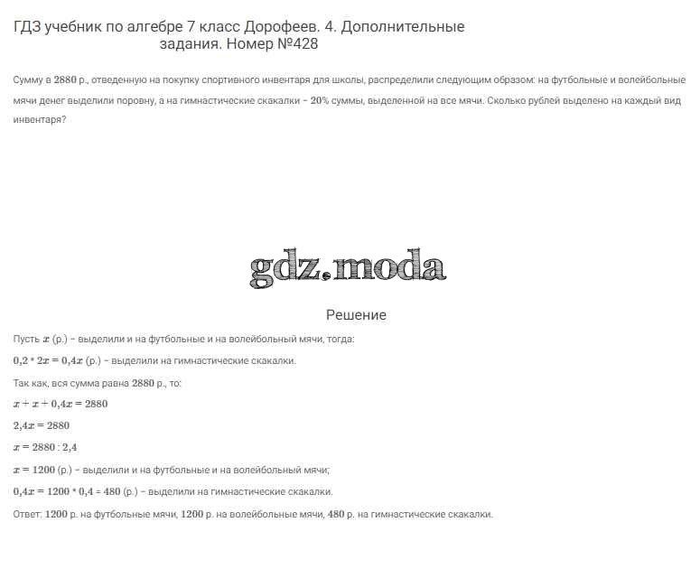 ОТВЕТ на задание № 428 Учебник по Алгебре 7 класс Дорофеев Академический школьный учебник
