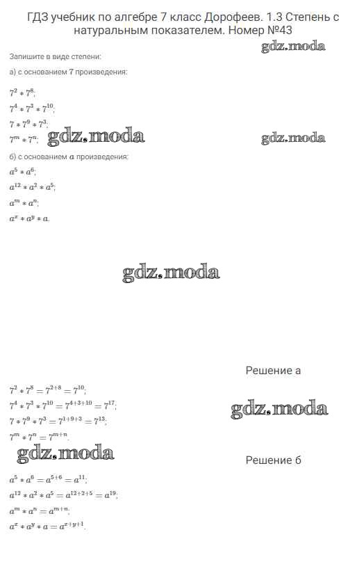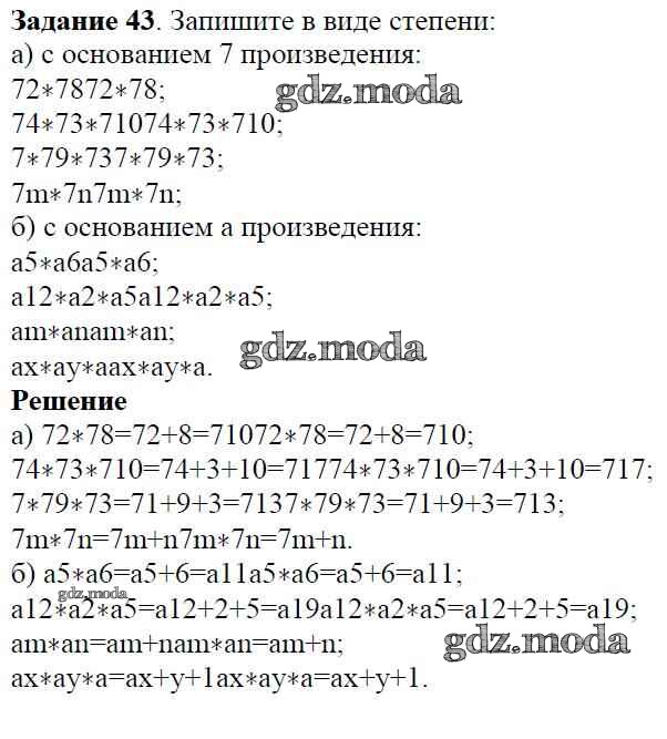ОТВЕТ на задание № 43 Учебник по Алгебре 7 класс Дорофеев Академический школьный учебник