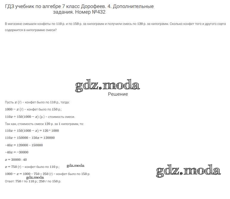 ОТВЕТ на задание № 432 Учебник по Алгебре 7 класс Дорофеев Академический школьный учебник