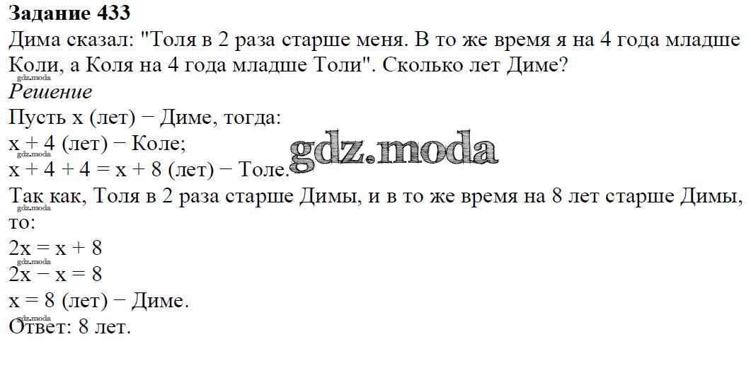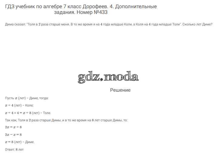 ОТВЕТ на задание № 433 Учебник по Алгебре 7 класс Дорофеев Академический школьный учебник